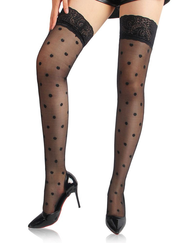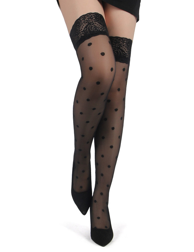 جوراب بالا زانو شیشه ای خالدار گیپور دار