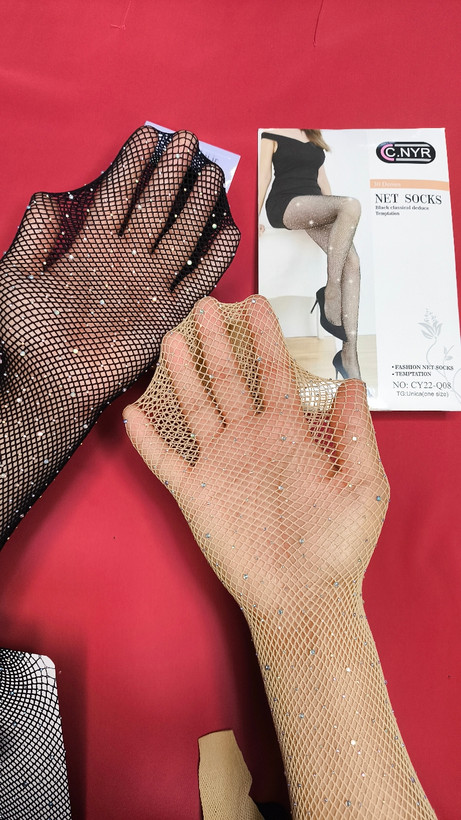 جوراب شلواری توری نگین دار مشکی و کرم وارداتی اعلا