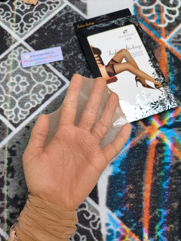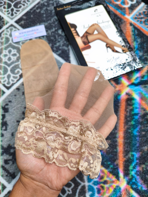 جوراب بالا زانو شیشه ای دارای گیپور و ژله دار